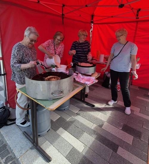 Jämsän Äijän markkinoilla 27.5. Lettukahvilan emännät ja talkoolaiset.