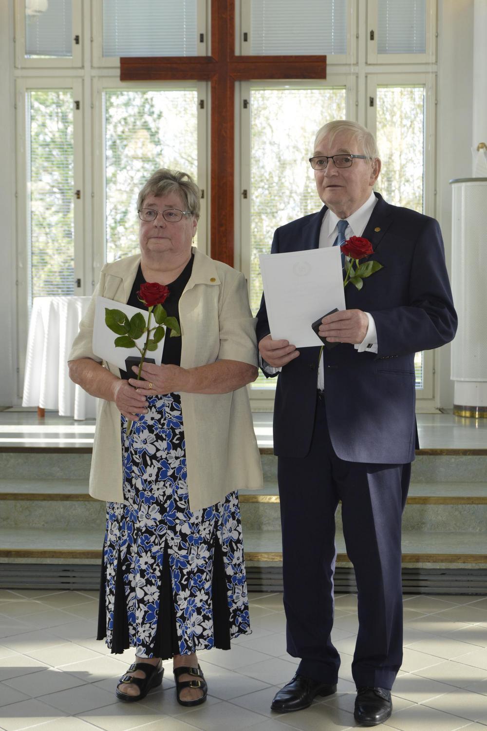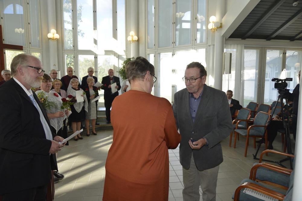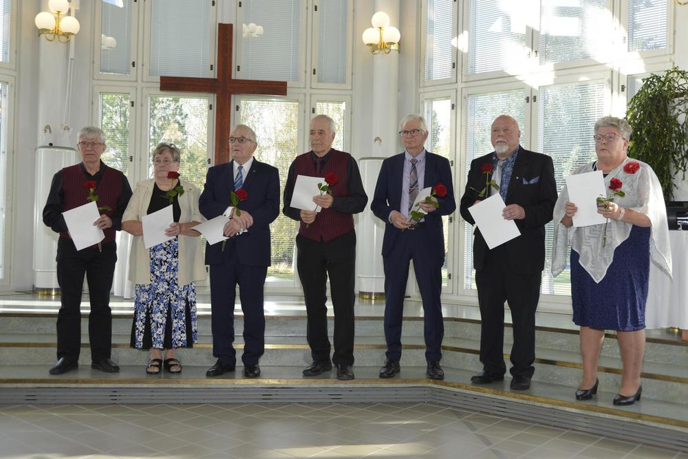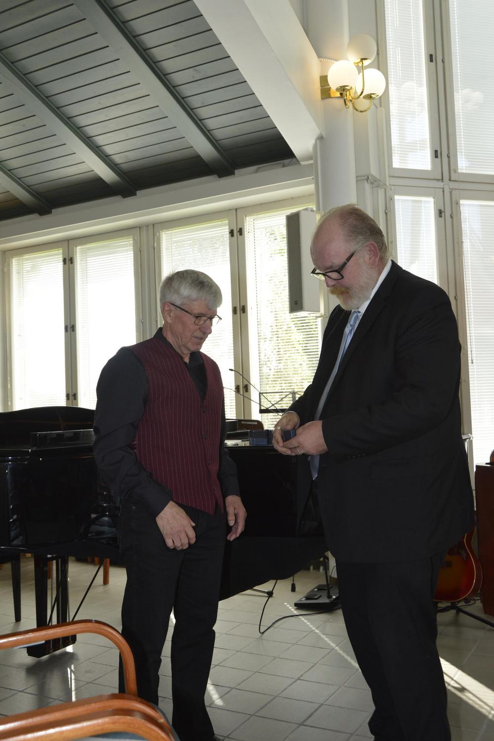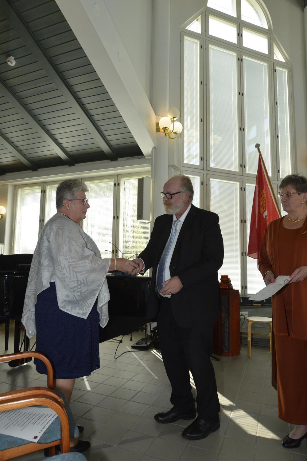 Lopuksi jaettiin ansiomerkit yhdistyksen ansioituneille. Palkittujen joukossa oli 16 aktiivista jäsentä, jotka saivat tunnustusmitaleja sekä kultaisia ja hopeisia ansiomerkkejä.