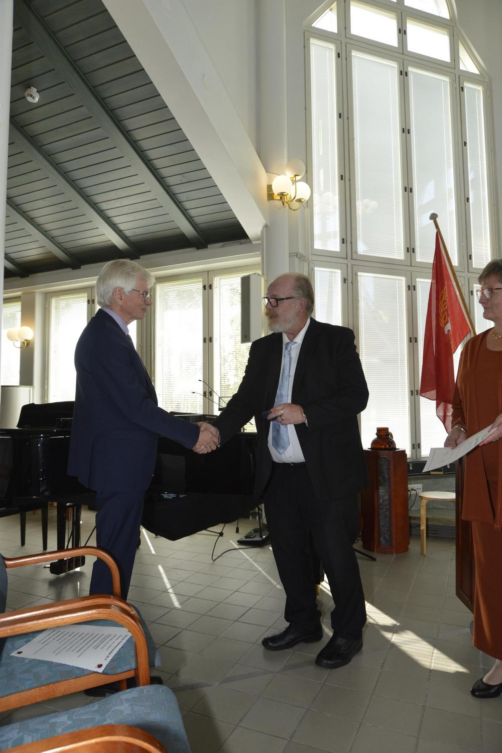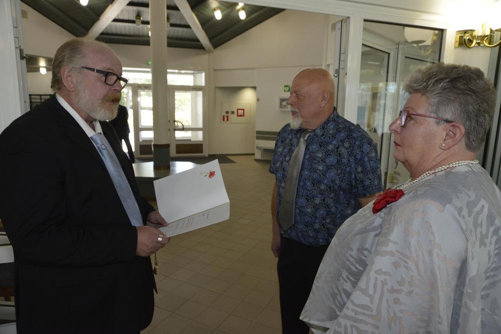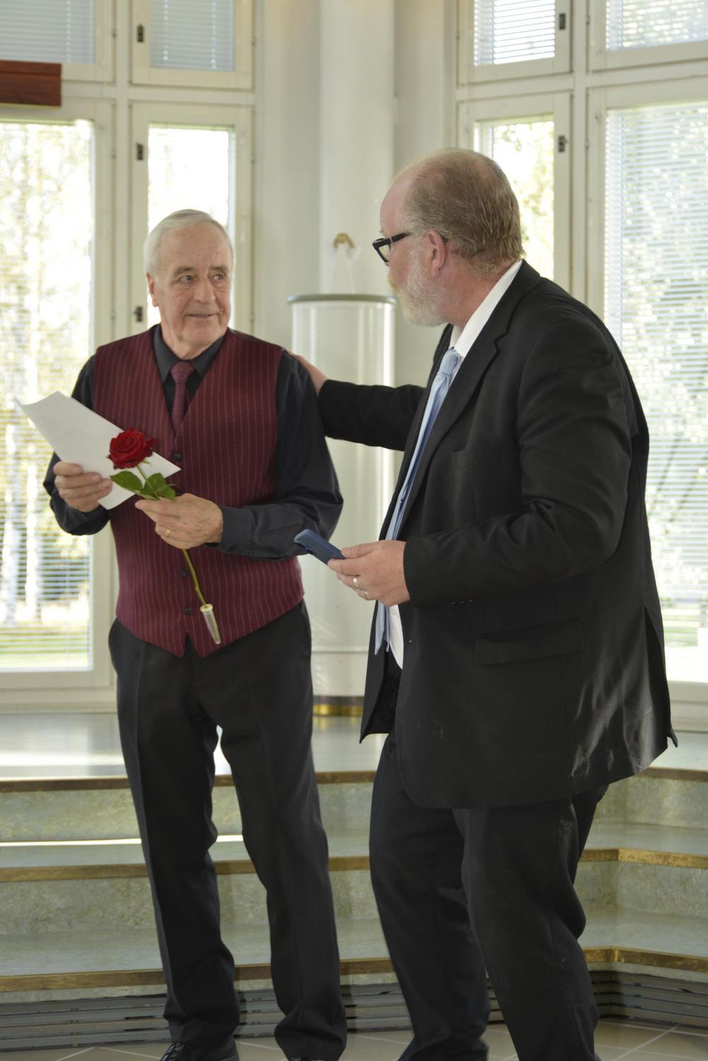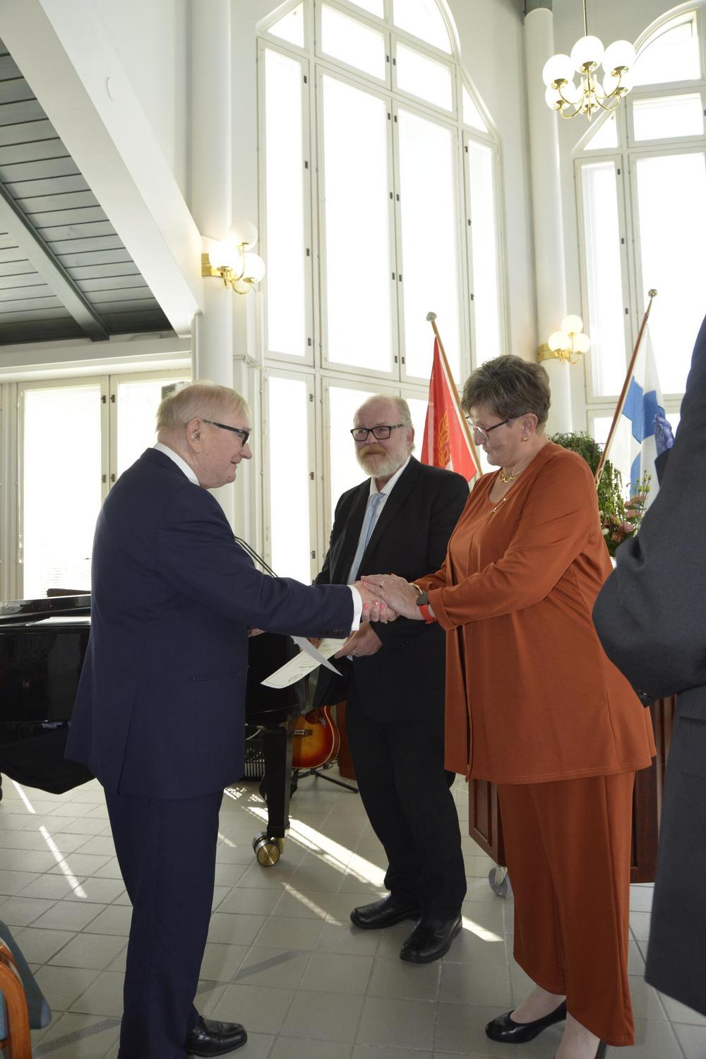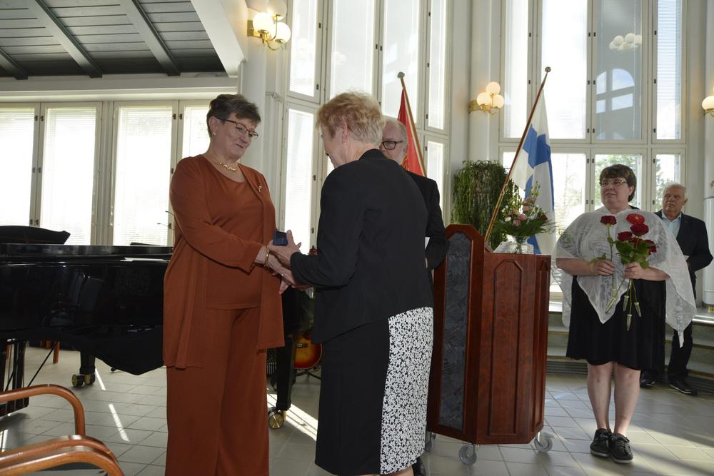 Lopuksi jaettiin ansiomerkit yhdistyksen ansioituneille. Palkittujen joukossa oli 16 aktiivista jäsentä, jotka saivat tunnustusmitaleja sekä kultaisia ja hopeisia ansiomerkkejä.