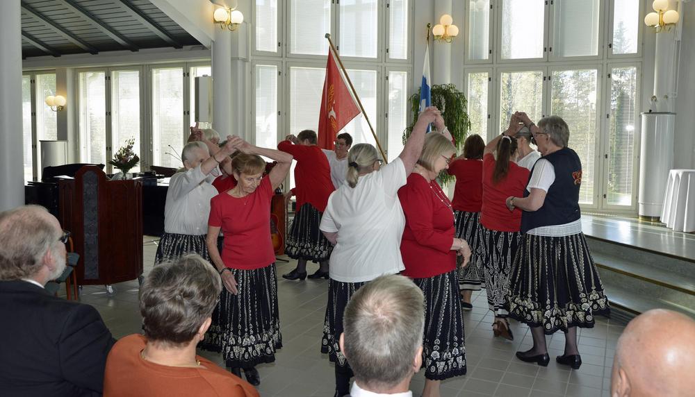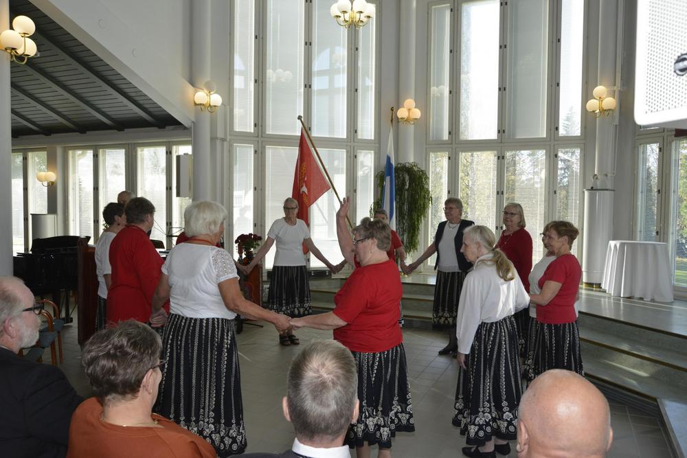 Puheenjohtaja Jukka Sinisalo avasi juhlan ja kiitteli yhdistyksen aktiivista toimintaa. Harrastetoiminta on monipuolista: yhdistyksellä on kaksi kuoroa, Kipakat ja Harmaat, joiden yhteisnumero juhlan loppupuolella hurmasi kuulijat. Tanssin iloa toivat lavalle ryhmät Senioritanssijat ja Tanssinaskelia, joissa nähdään nykyään ilahduttavasti myös miesvoimaa.