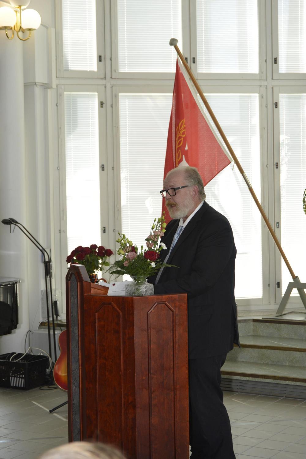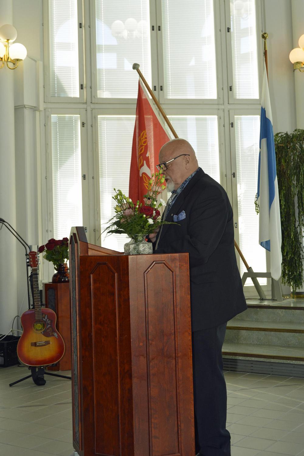 Elävän historiikkiesityksen piti Olavi Forssell, joka muistutti, että juhla ei ollut vain menneisyyden muistelua, vaan myös katse tulevaisuuteen. Jämsässä on noin 7000 eläkeikäistä, joista vain 2000 kuuluu eläkeläisyhdistyksiin – kasvunvaraa siis riittää.