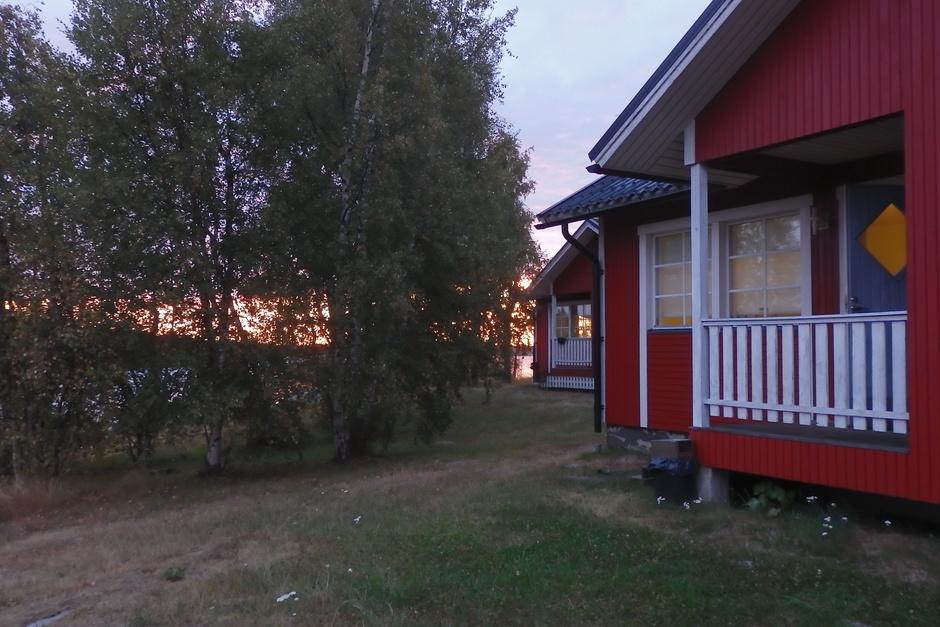 Brändön saarella vietettiin vaatimattomissa, mutta viehättävissä mökeissä eka yö. Aurinko on noussut aamulla 8.8.