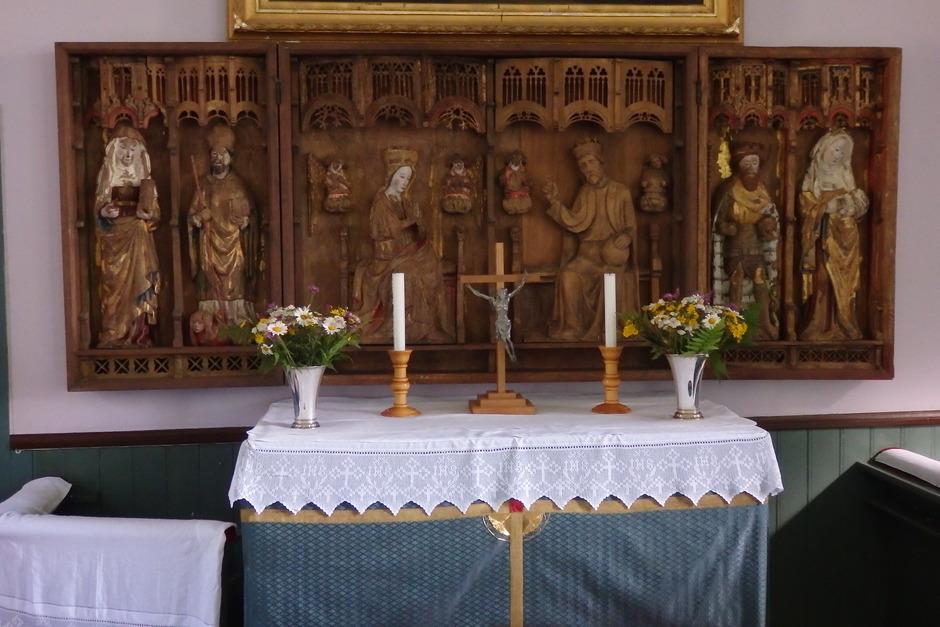 Kirkon vanha myöhäiskeskiaikainen alttarikaappi.