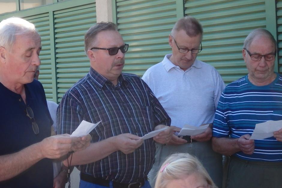 Aulis, Jarmo, Pertti O. ja Raimo kajauttivat myös onnittelut Liisalle!