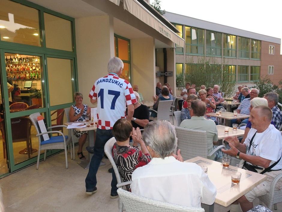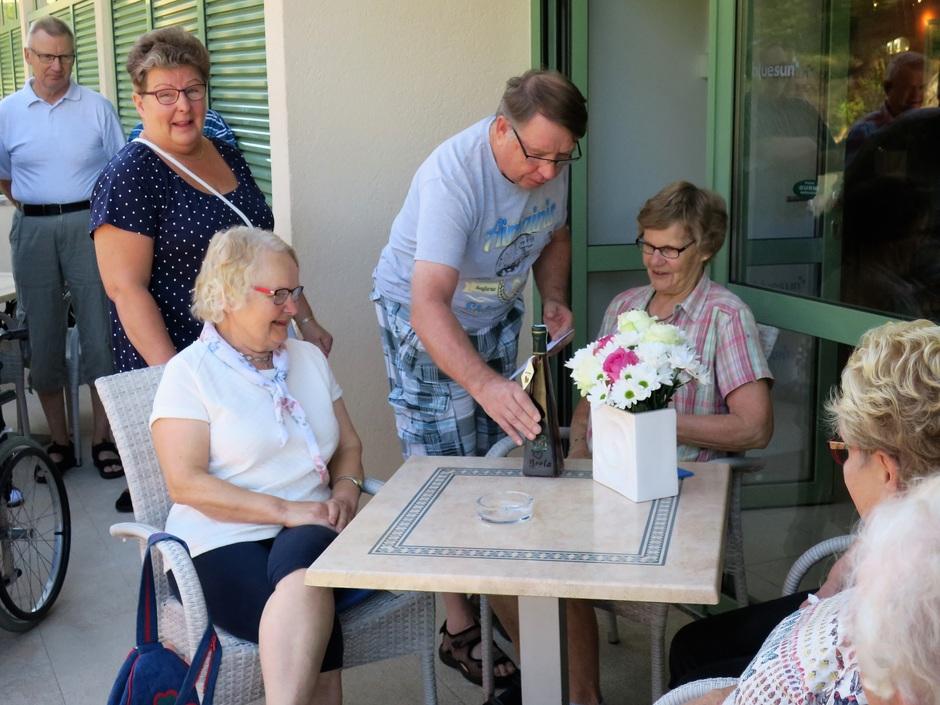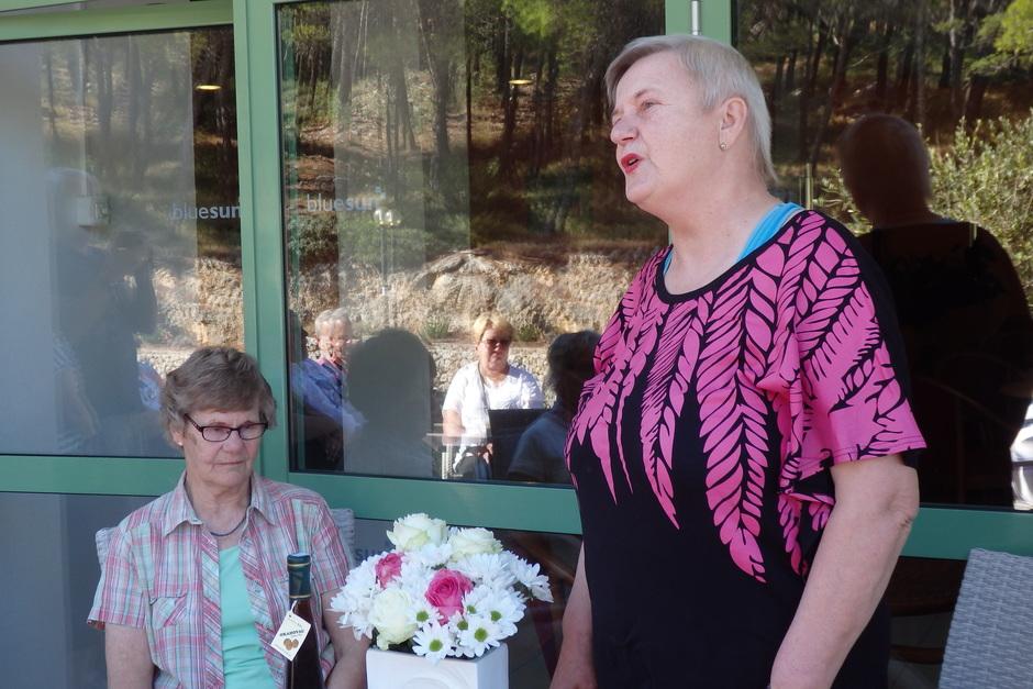 Matkamme aikana ryhmämme jäsen Liisa täytti pyöreitä. Puheenjohtaja Esa luovutti hänelle ryhmän lahjan. Onnea!