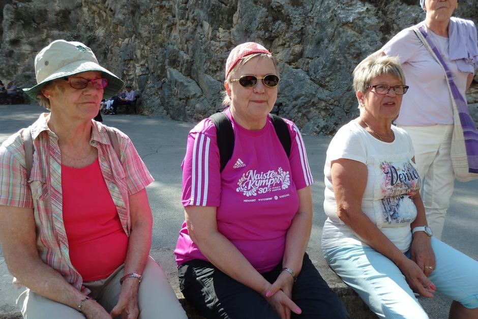 Liisa N., Pirkko H. ja Terttu bussia odottelemassa