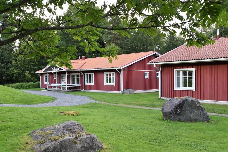 Päärakennuksen edessä levähtämässä, rakennus on entinen pappila