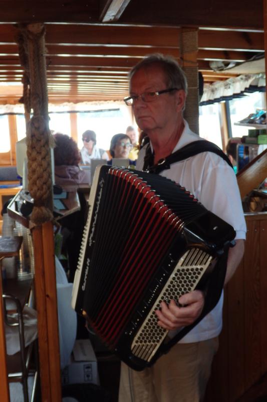 Oman mausteensa meidän risteilyyn toi taitava haitarin soittaja saaden porukan iloisesti laulamaan!