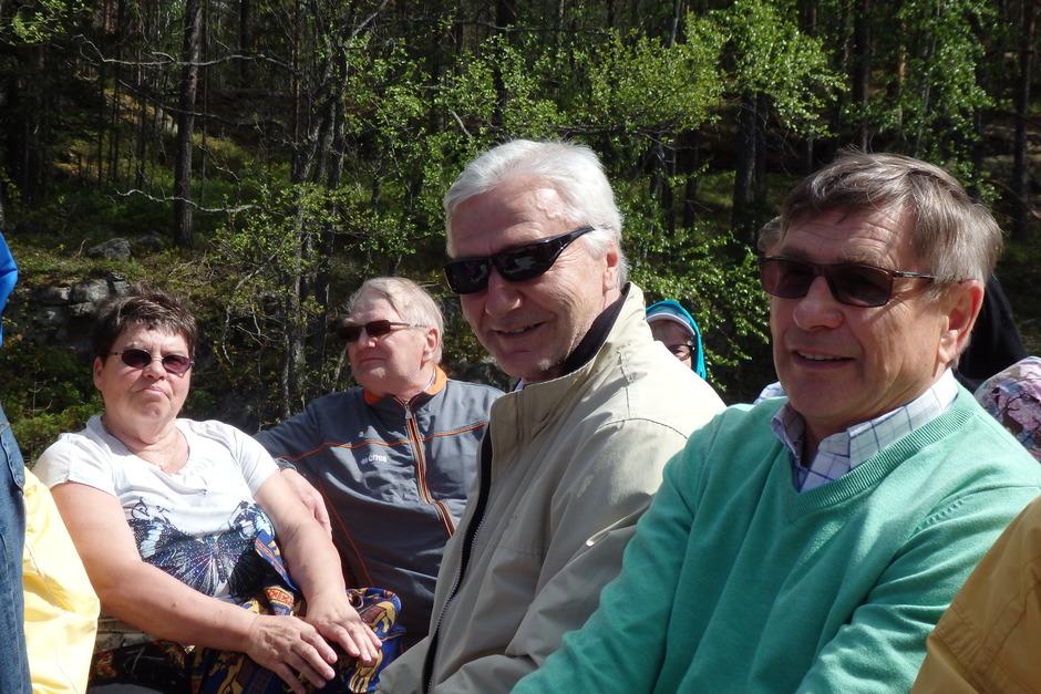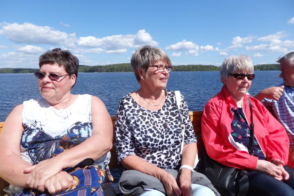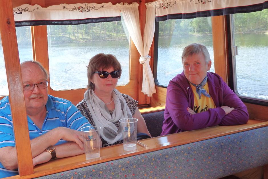 Auringosta nauttivat Leila, Keijo ja Pekka!