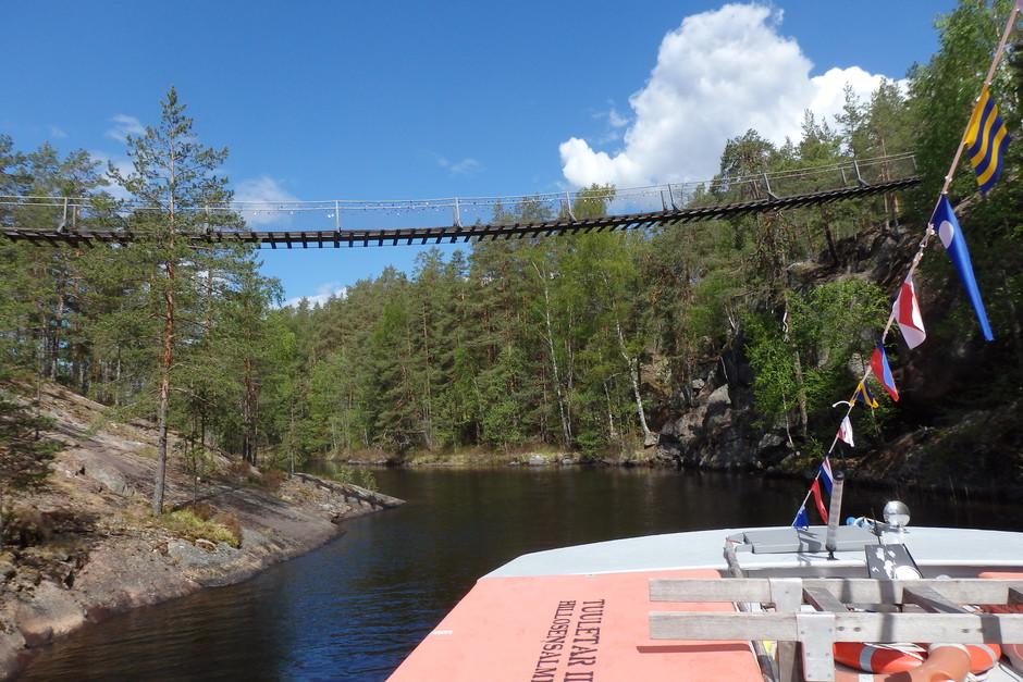 Edessä oleva riippusilta on se silta joka kesällä 2018 irtosi toisesta päästään...