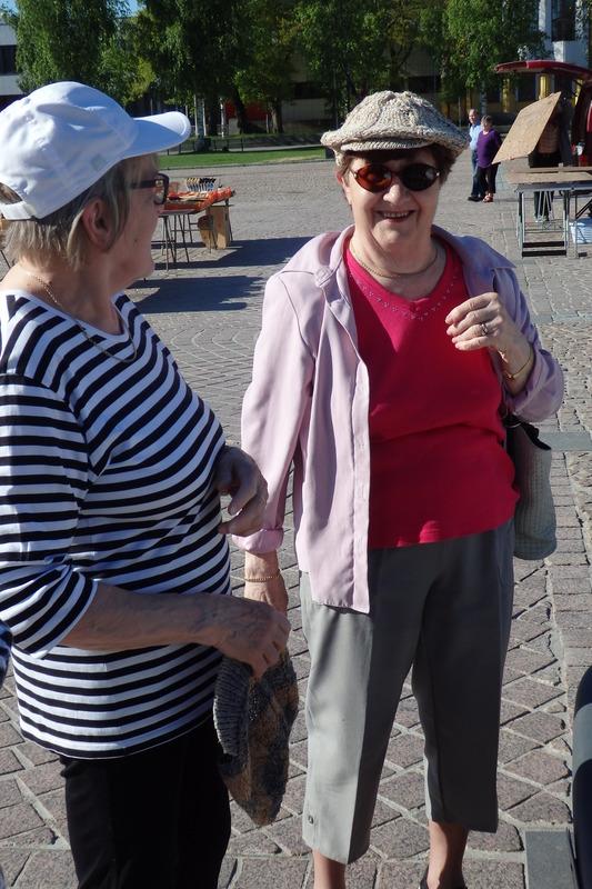 Kirsti ja Aili hatun ostossa Mikkelin torilla.