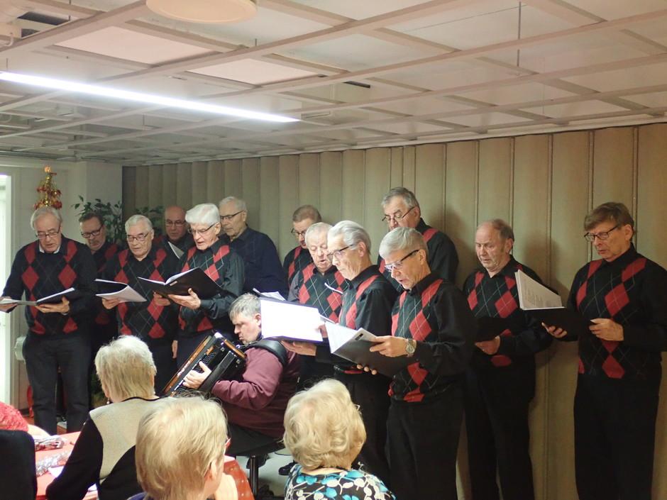 Yhdistyksen komea ääninen lauluryhmä "Harmaat" esitti Jukka Luukkasen säestyksellä kauneimpia joululauluja. Osa lauluista herkisti kuulijat kyyneliin saakka.