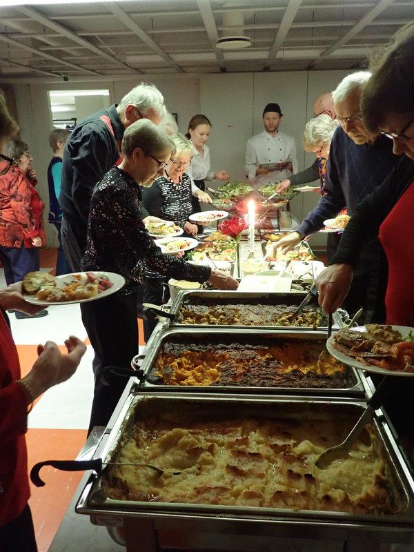 Hiljakkoin avatut uuden lounasravintola A & C:n edustajat kertoivat aluksi mitä herkkuja on tarjolla. Ja kyllä hyvin ruoka maistui ja sitä oli runsaasti!