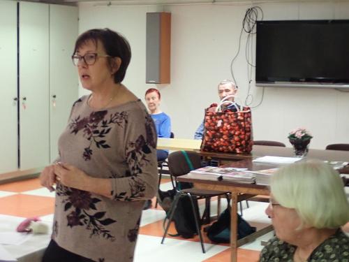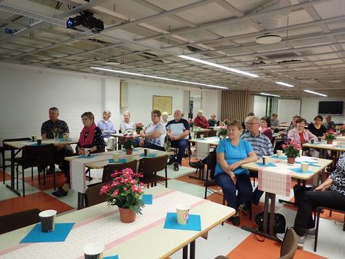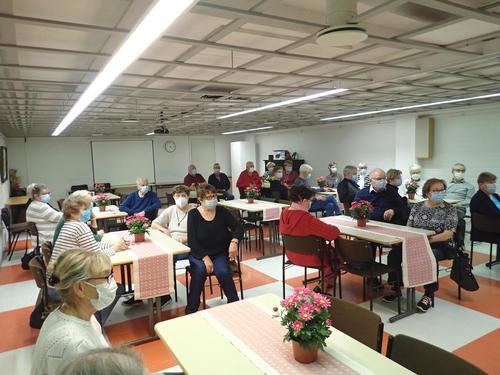 Suomessa on todettu noin 200 000 muistisairautta potevaa henkilöä, joka päivä tulee 40 uutta tapausta! Marja-Leena korosti meidän jokaisen oikeutta ja velvollisuutta tehdä ns. huoli-ilmoitus mikäli lähipiirissämme havaitsemme viitteitä muistiongelmasta. Hän totesi, että tämä yhteisöllisyys jota kerhojemme, karaoken, boccian,senioritanssien ja lauluryhmien muodossa harrastamme on mitä parhainta ennaltaehkäisyä!