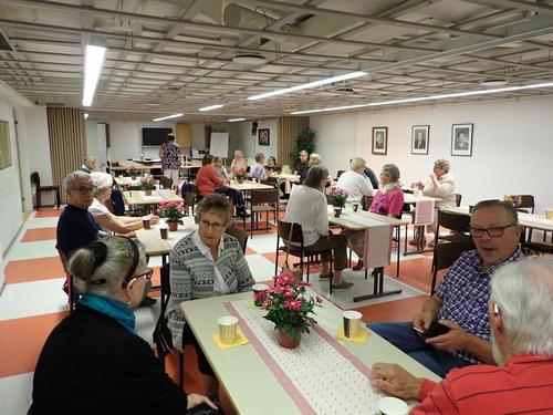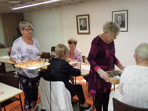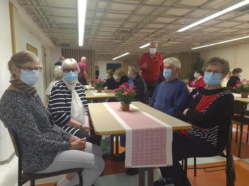Keskiviikkona 2.9.-20 aloimme kuitenkin yrittämään uudestaan, vaikka se niin sanottu "toinen aalto" viruksen suhteen väijyy nurkan takana. Pidimme kerhon ja samassa yhteydessä keväältä siirtyneen kevätkokouksemme. Kahvittelimme poikkeuksellisella tavalla, pöydissä oli aina maksimissaan neljä henkilöä hyvillä turvaväleillä ja kahvit + pullat tarjoiltiin pöytiin. Sehän oli suorastaan luksusta!