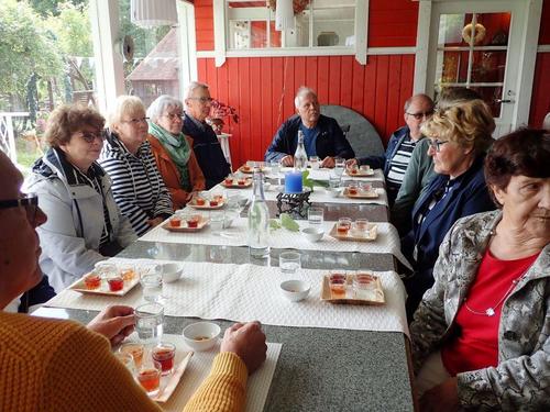 Ensimmäiseksi kohteeksi paljastui juhlapalvelutoimintaa tarjoava lähes 300-vuotinen sukutila Eräjärven Eerola. Siellä nautimme aamukahvit täytetyn kroisantin kera.