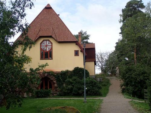 Ja matka jatkui, seuraavana kohteena kuvanveistäjä Emil Wikströmin taiteilijakoti Visavuori Valkeakoskella. Tämän kansallisromanttisen ateljeekodin taiteilija suunnitteli ja toteutti Sääksmäen maisemiin vuosina 1893-1912. Tämä kohde oli niin monimuotoinen että aikaa tutustumiseen olisi voinnut olla huomattavasti enemmän. Tällä kertaa se ei ollut kuitenkaan mahdollista, edessä oli vielä uusia kohteita päivän kuluessa.