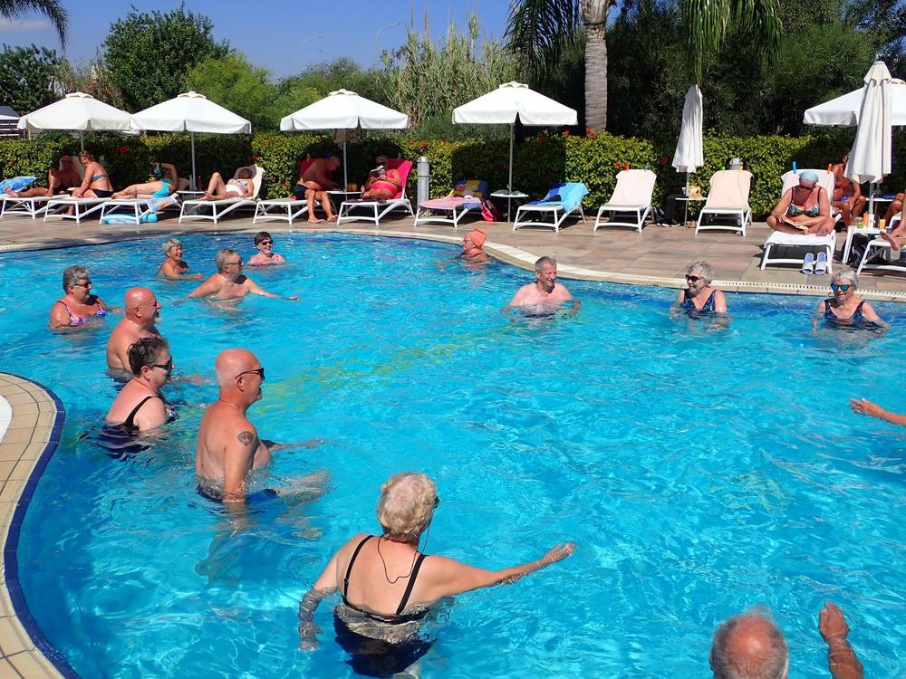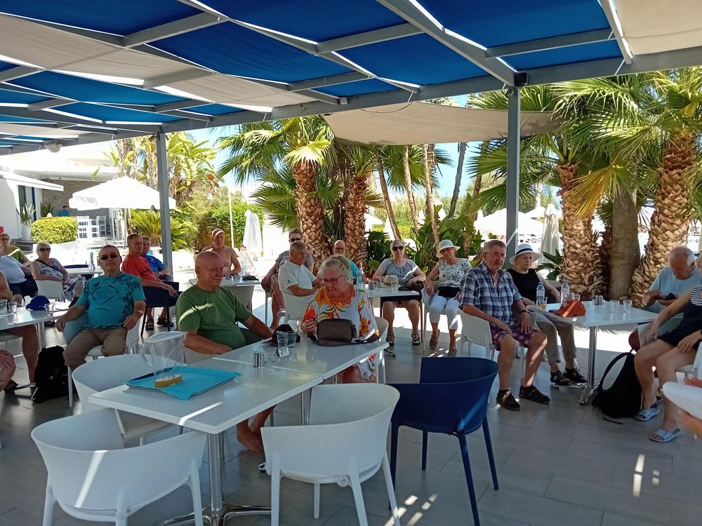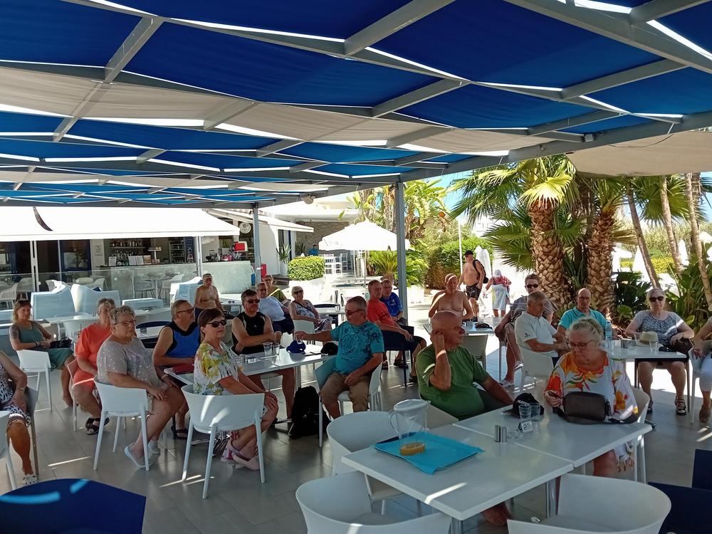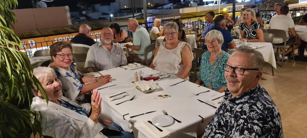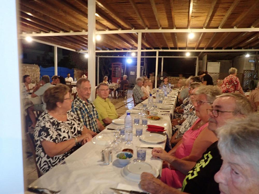 Kolmekymmentäneljä henkinen ryhmämme vietti loman viimeisen illan yhteisellä illallisella hotellimme viihtyissä ulkoilmaravintolassa.