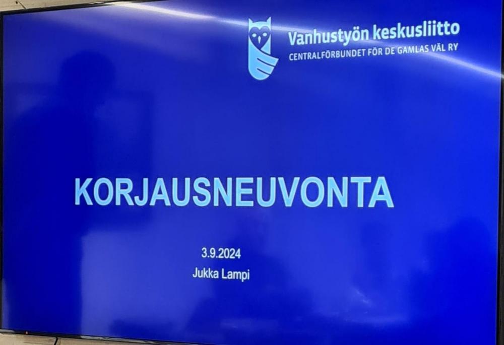 Vieraanamme oli rakennusmestari Jukka Lampi, joka toimii Vanhustyön Keskusliiton alueellisena korjausneuvojana Keski - Suomessa. Esitys oli erittäin antoisa korjausneuvonnan ja kodin turvallisen arkiteknologian esittely.