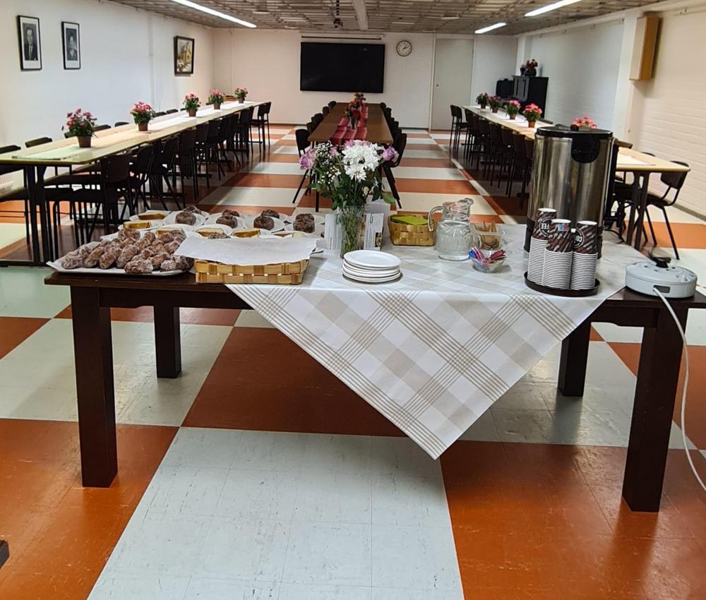 Emännät olivat paistaneet tuoreet munkit. Pidimme hiljaisen hetken poisnukkuneen jäsenemme muistoksi.