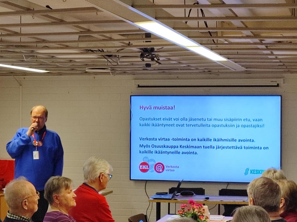 Kokouksen aluksi EKL:n järjestösuunnittelija Juha Viitanen kertoi tietotekniikan vertaisopastajien koulutuksesta Jämsässä. Seuraava infotilaisuus on 4.4. klo 14.00 Kirjastolla. Opastajien tarvetta on ja nyt olisi mahdollisuus osallistua koulutukseen.