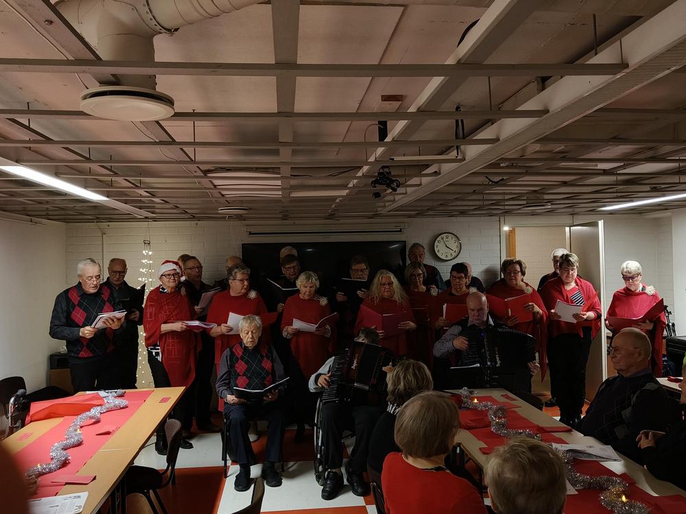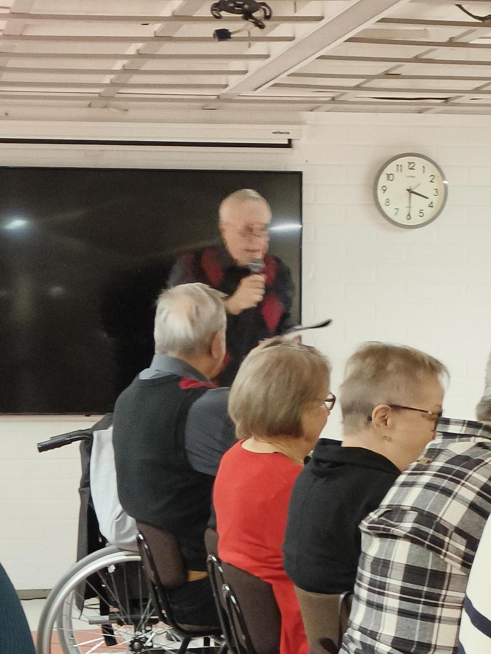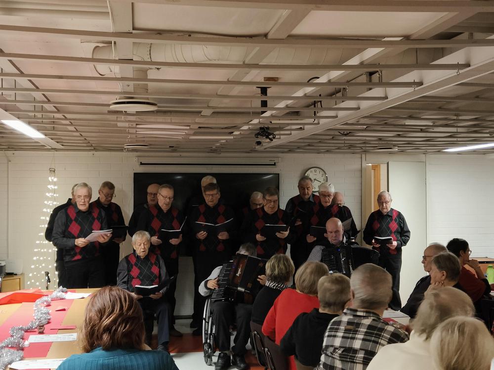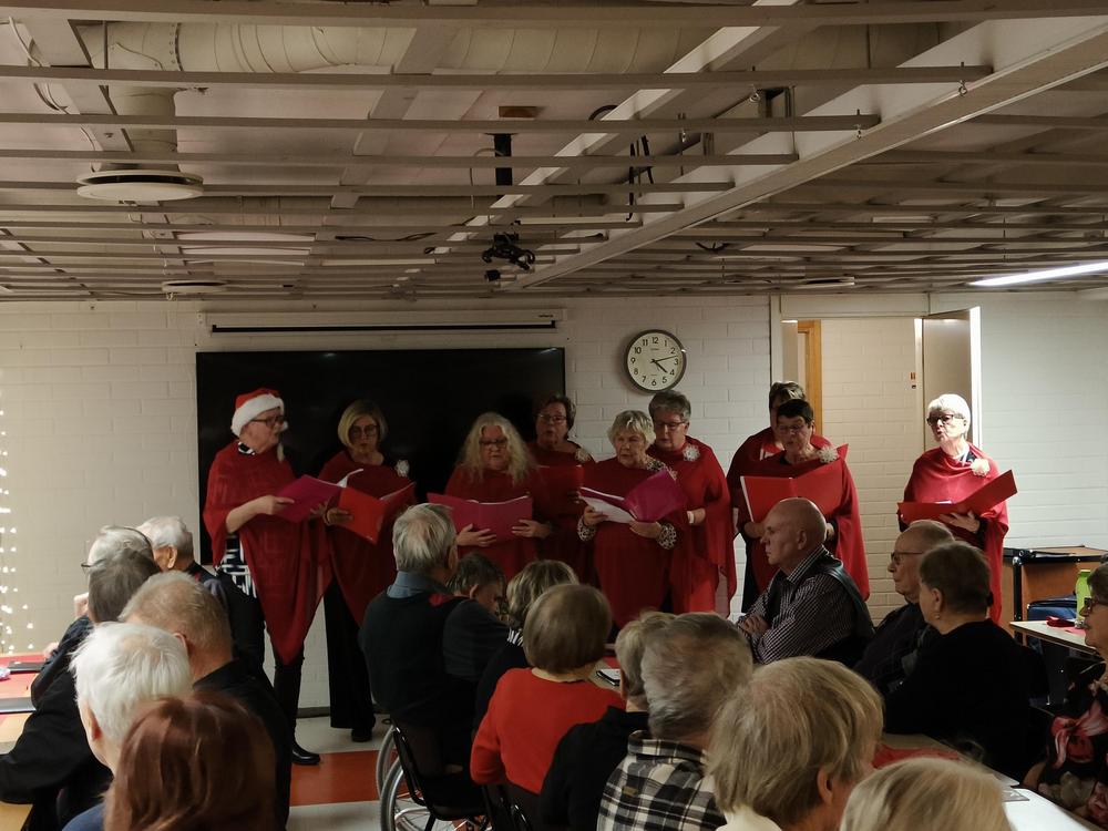 Puurojuhlaa vietettiin noin 100 eläkkeensaajan joukolla. Emännät olivat keittäneet maittavan riisipuuron rusinasopan kera. Aulis juonsi tuttuun tapaan tiaisuuden. Kuoromme Harmaat ja Kipakat esiintyivät ja olihan meillä myös yhteisten Joululaulujen hetki . Emännät tarjosivat vielä torttukahvit. Ja tulihan se Joulupukkikin tontuineen ja paketteineen paikalle.