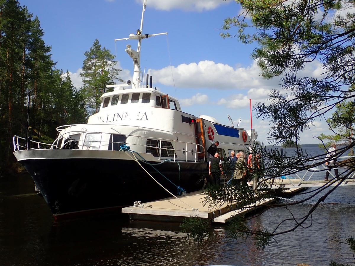 Tikkakosken jälkeen siirryimme risteilemään Etelä-Konneveden kansallispuiston maisemiin m/s Linnea-laivan kyydissä. Lähtö oli Konneveden satamasta, Häyrylänrannasta. Risteilyn lomassa nautimme laivalla maittavan verkkokalastajan lohikeiton lisukkeineen ja omenapiiraskahveineen. Samalla kun pidimme taukoa Lapinsalon saaren laiturissa, pääsimme hiukan jaloittelemaan ja kiertelemään saarta.