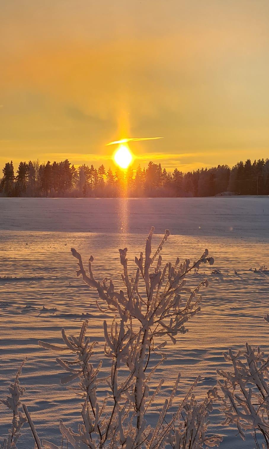 Aamuauringon säteitä pakkasyön jälkeen.