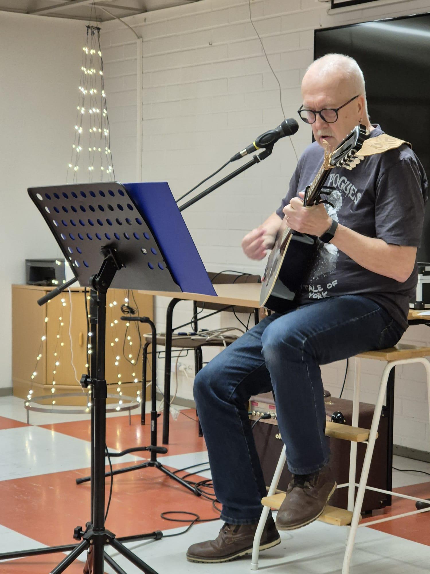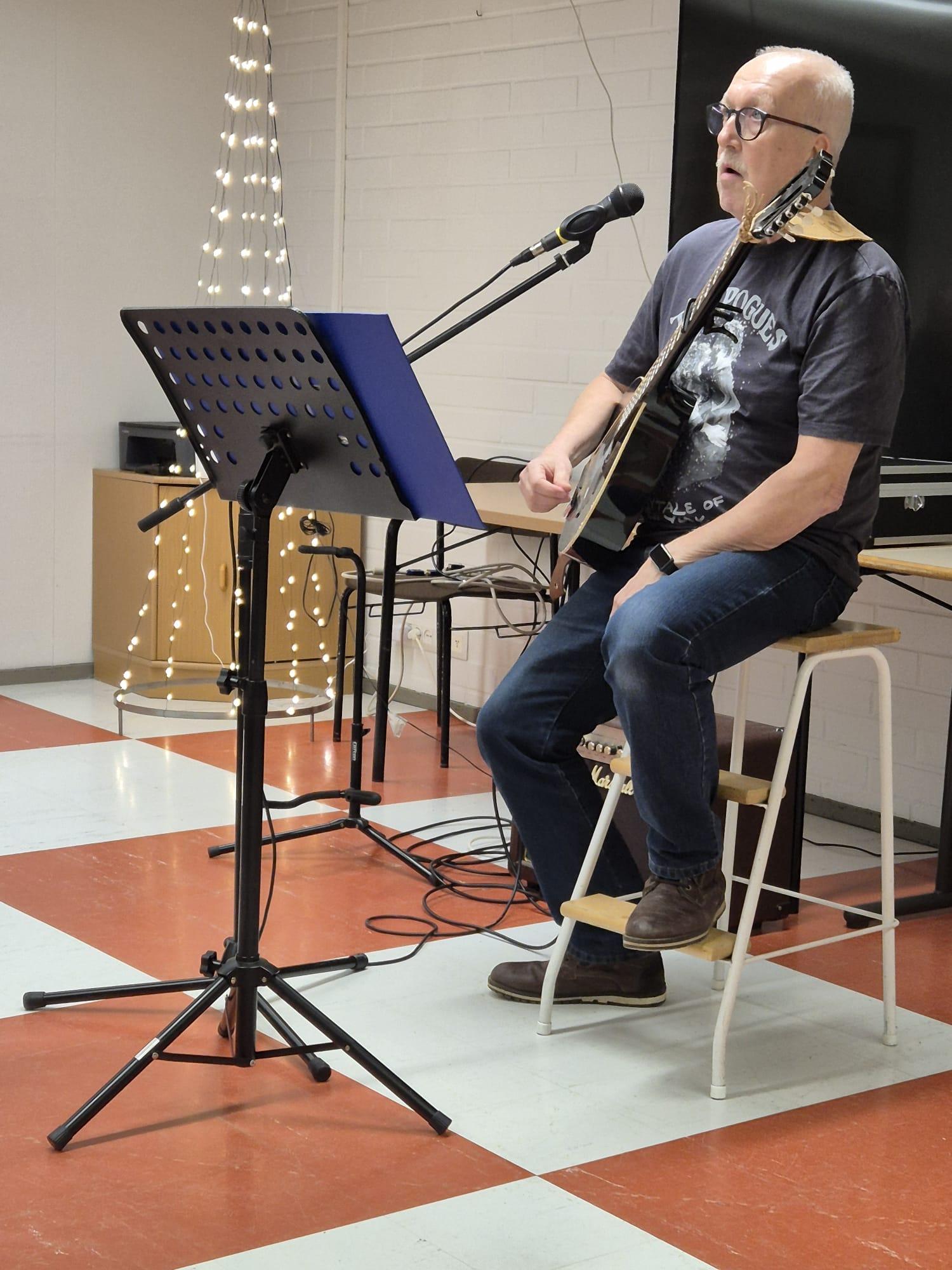 Tiistaikerhossa Aulis ja pojat laulattivat innokasta yleisöä. Laulujen välissä Aulis piti musiikkiaiheista tietokilpailua.