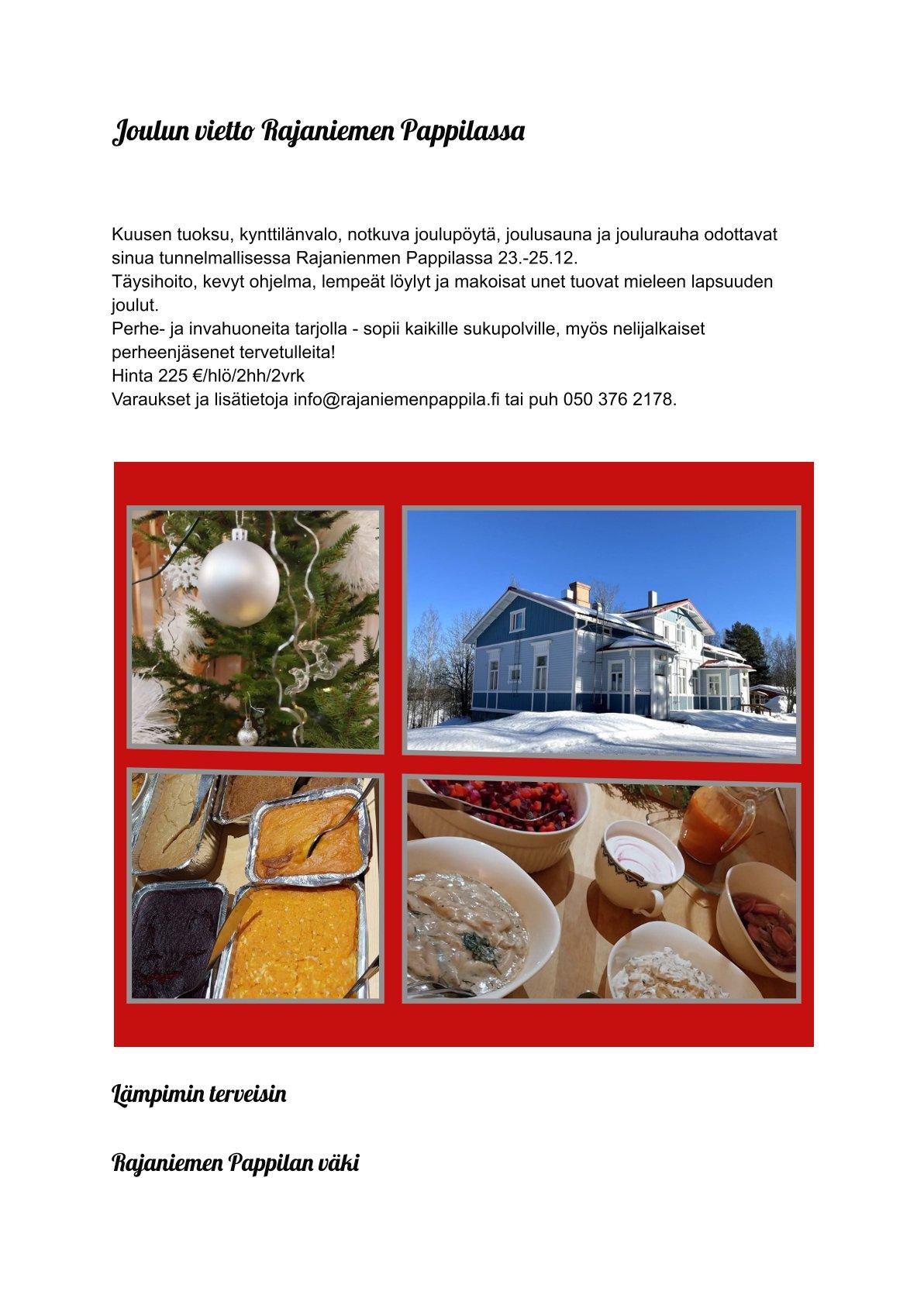 Tervehdys! Teemme retken 11. - 13.11.-25 "pikkujoulujen" merkeissä Kuopioon kylpylähotelli Rauhalahteen. Peruutuksen vuoksi olisi yksi naispaikka vapaana!! Ilmoittautuminen Pertille, 0400 - 951 988.…