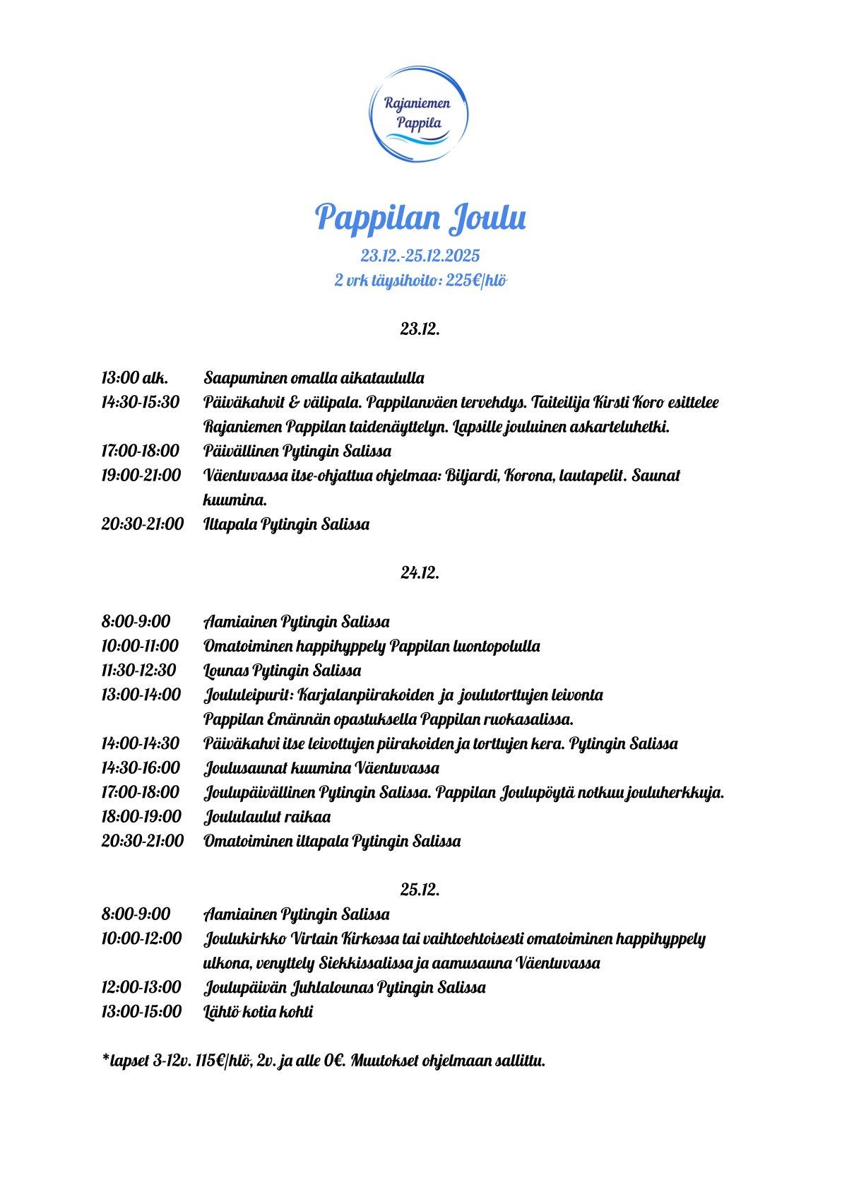Jouluvietto Rajaniemen Pappilassa